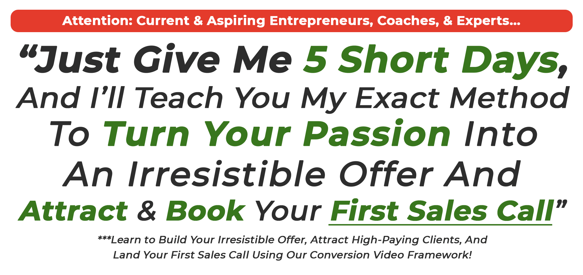 DISCLAIMER: The sales figures and results discussed in this training are our personal results and in some cases the sales figures and results of previous or existing clients. Please understand these results are not typical. We’re not implying you’ll duplicate them (or do anything for that matter). The average person who watches “how to” information webinars get little to no results. We’re using these references for example purposes only. Your results will vary and depend on many factors including but not limited to your background, experience, and work ethic. All business entails risk as well as massive and consistent effort and action. If you’re not willing to accept that, please DO NOT ATTEND THIS TRAINING.